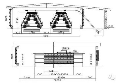 以一棟一萬雞計算,采用四層階梯式蛋雞比較劃算,則雞舍的尺寸采用80米長、9米寬、3米高。